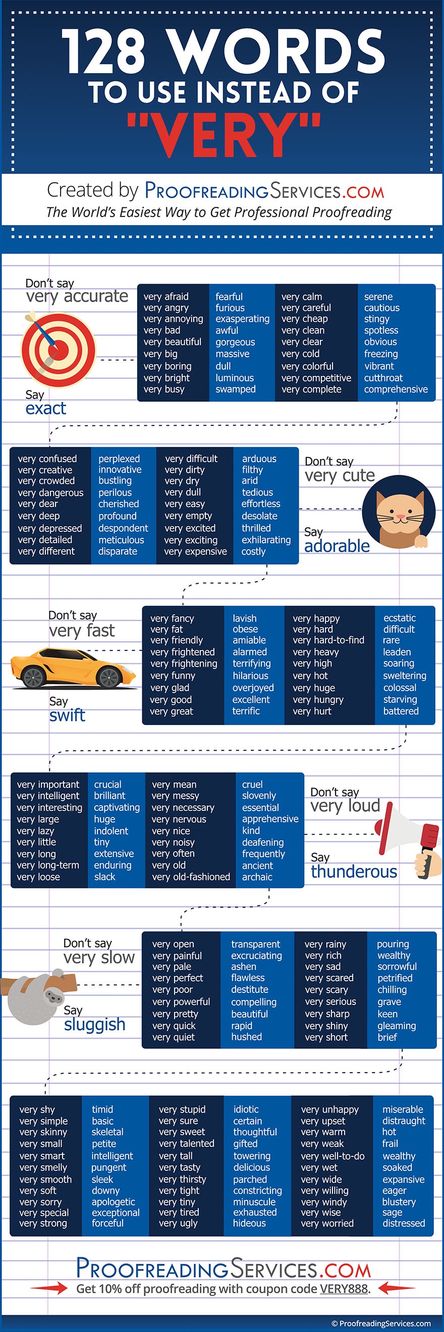 128 words to use instead of “very” – a handy writing style guide from Luke at www.proofreadingservices.com: