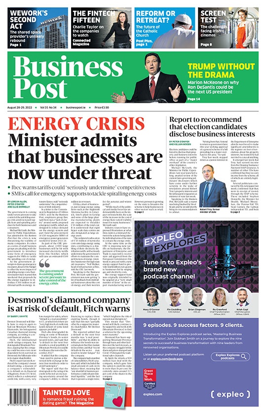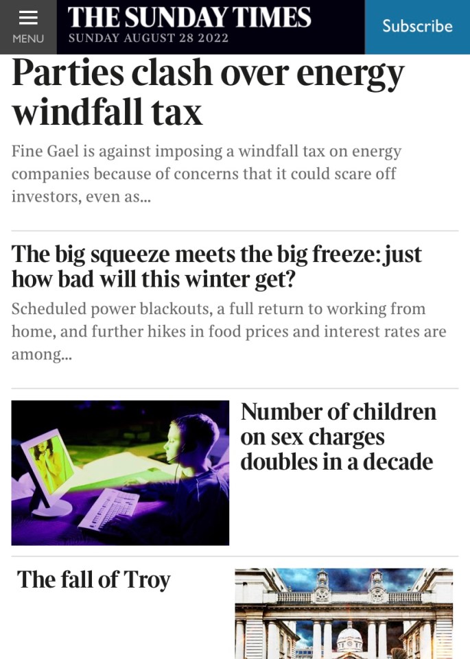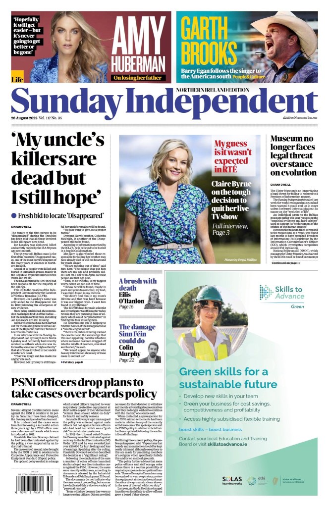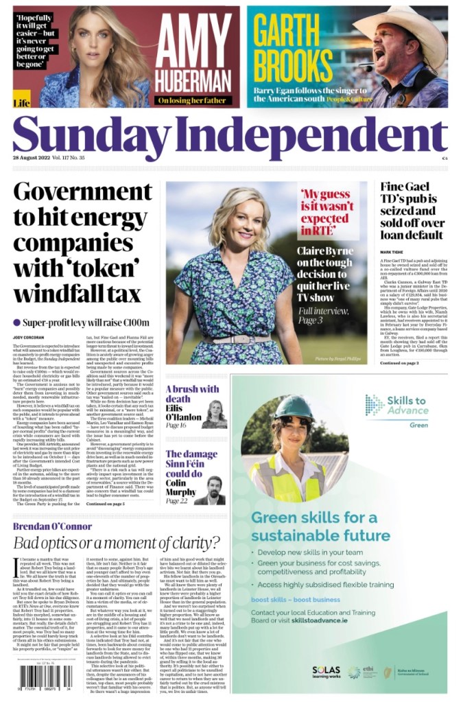 The Irish Sunday newspaper #frontpages (August 28, 2022).