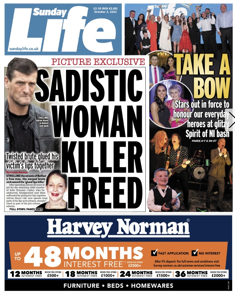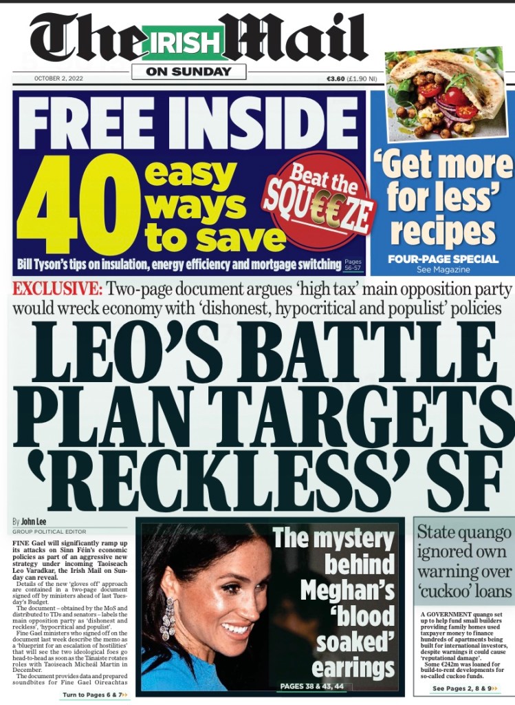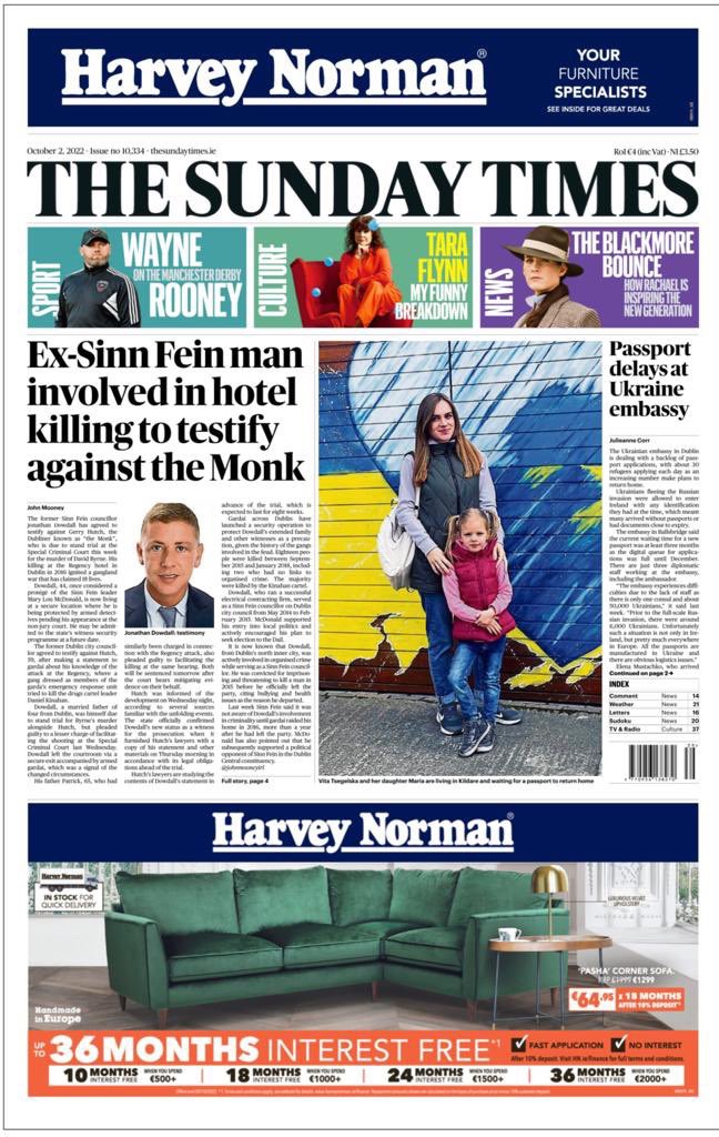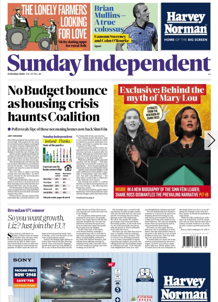 The Irish Sunday newspaper #frontpages – Oct 2nd 2022