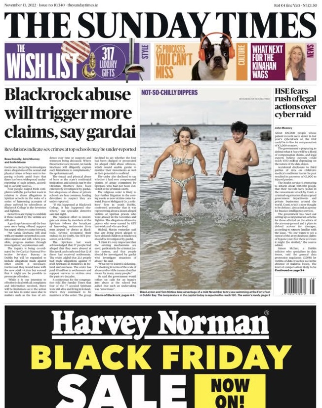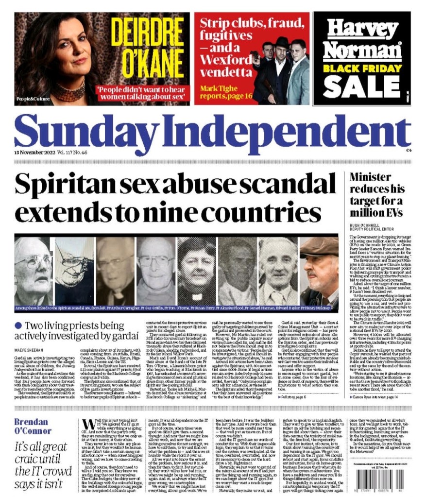 Todays Irish Sunday newspaper #frontpages – updated… (For Sun Nov 13th).