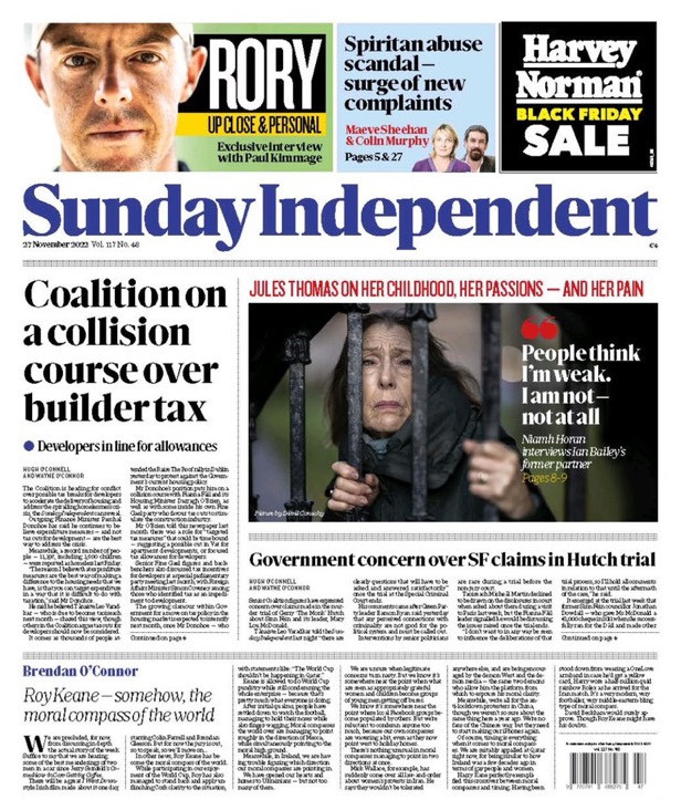 The Irish Sunday newspaper #frontpages – for 27 Nov. #Buyapaper