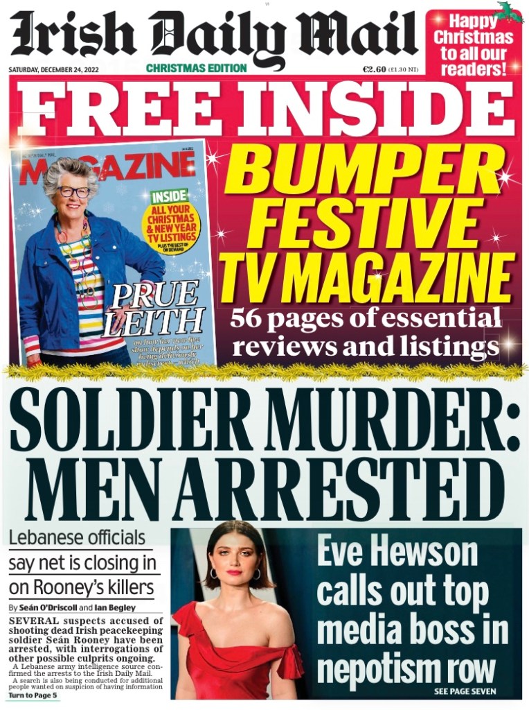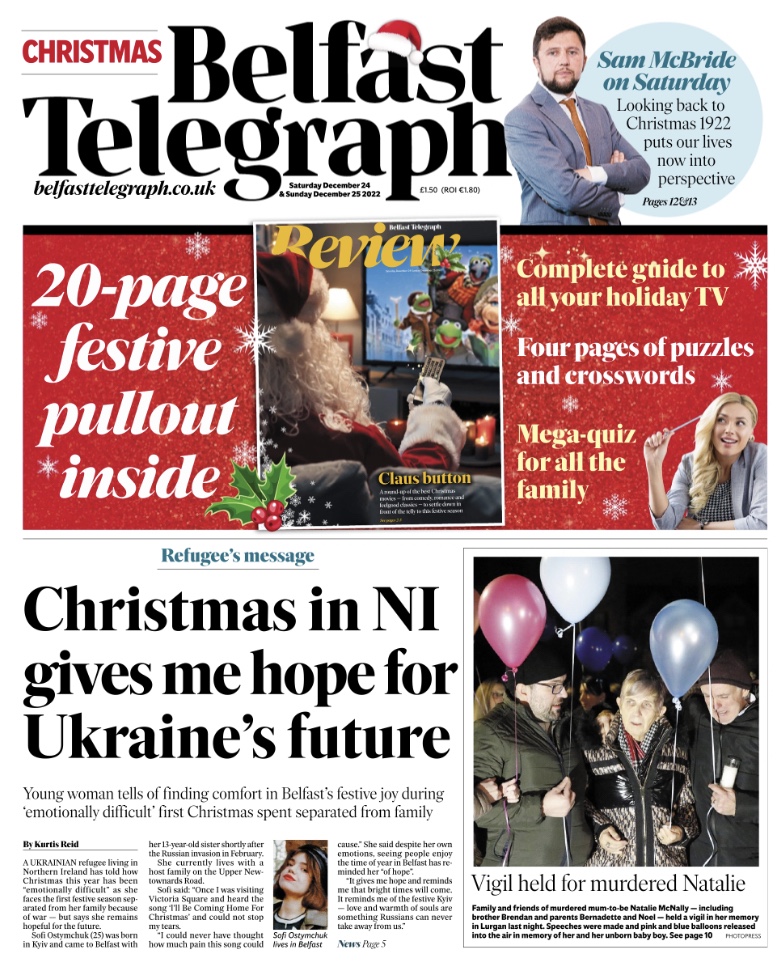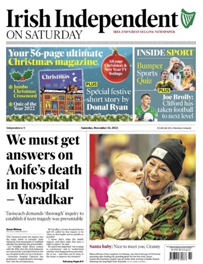 The Irish Christmas newspaper #frontpages – mixed bag!!
