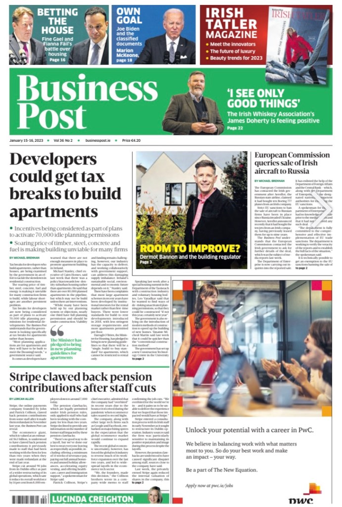 The #Irish Sunday newspaper #frontpages (for Jan 15th) – updated
