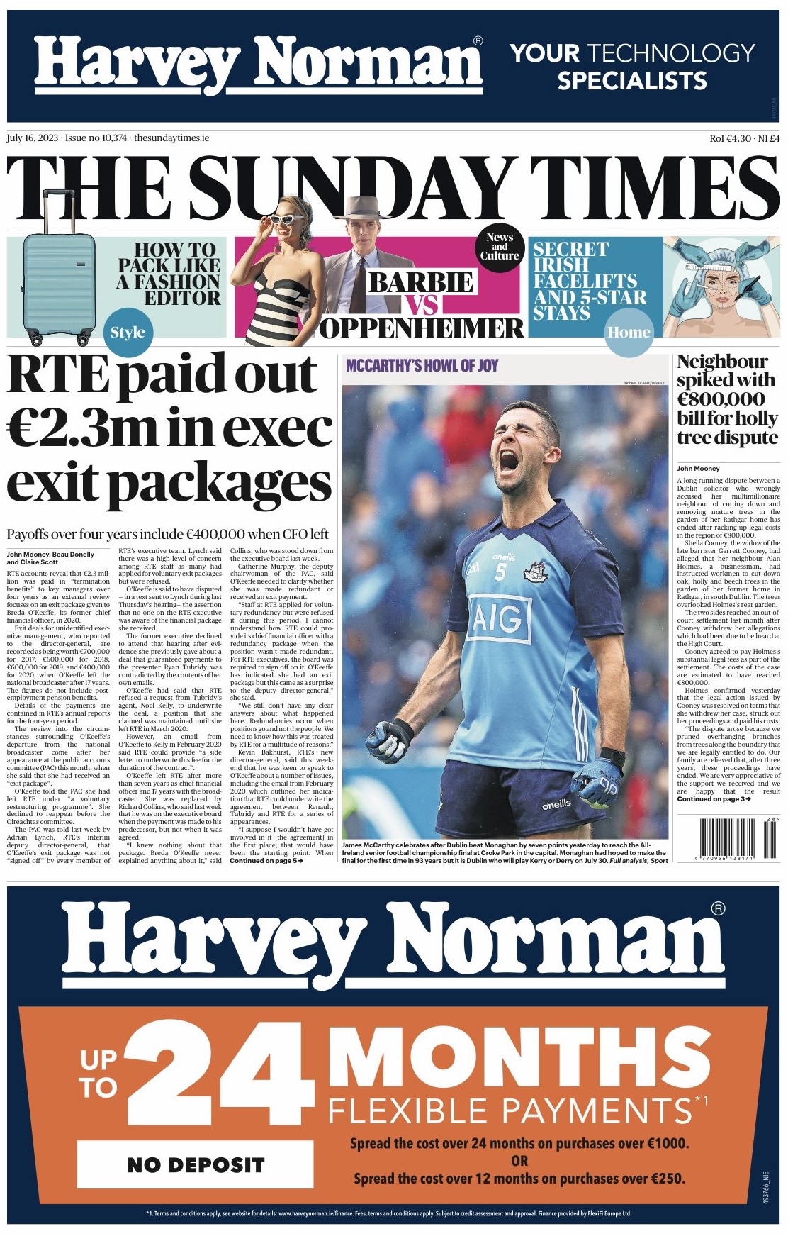 The Irish Sunday newspaper #frontpages (For July 16) #buyanewspaper