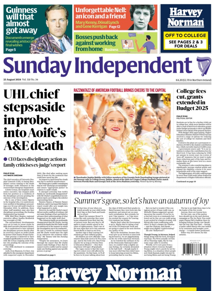 Irish Sunday newspaper #frontpages – August 25th [Updated]