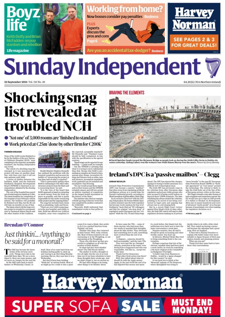 Irish Sunday newspaper #frontpages for Sept 22 [Updated]