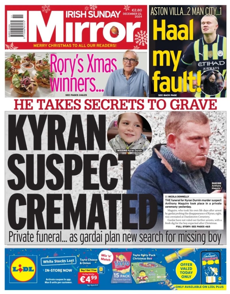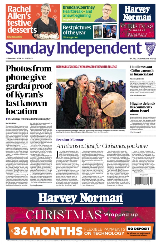 Irish Sunday newspaper #frontpages – for Sunday Dec 22nd [Updated]