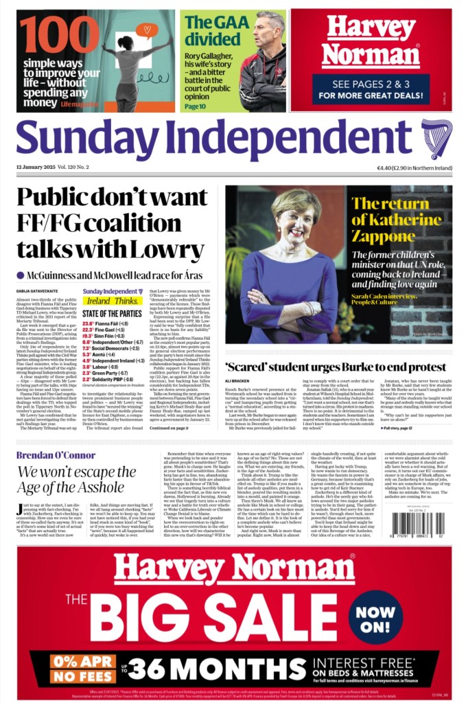 Irish Sunday newspaper #frontpages – Jan 12th [Updated]