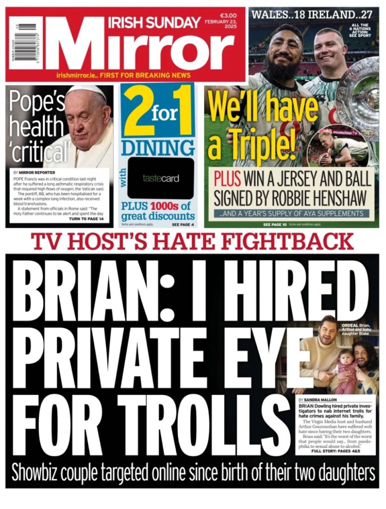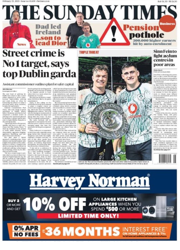 Irish Sunday newspaper #frontpages – for Feb 23 [Updated]