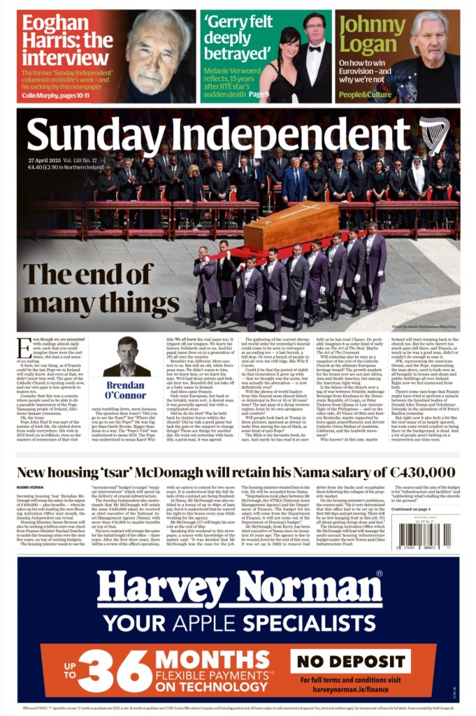 Irish Sunday newspapers #frontpages for April 27, 2025 [Updated]