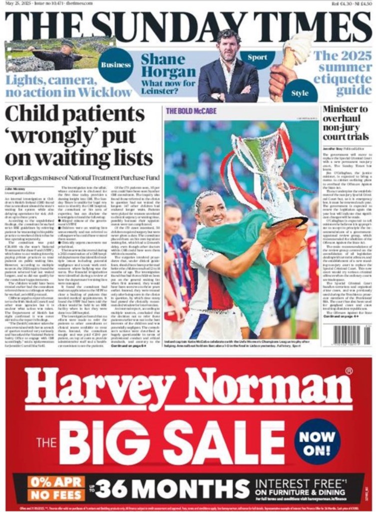 Irish Sunday newspaper #frontpages for May 25 [Updated]