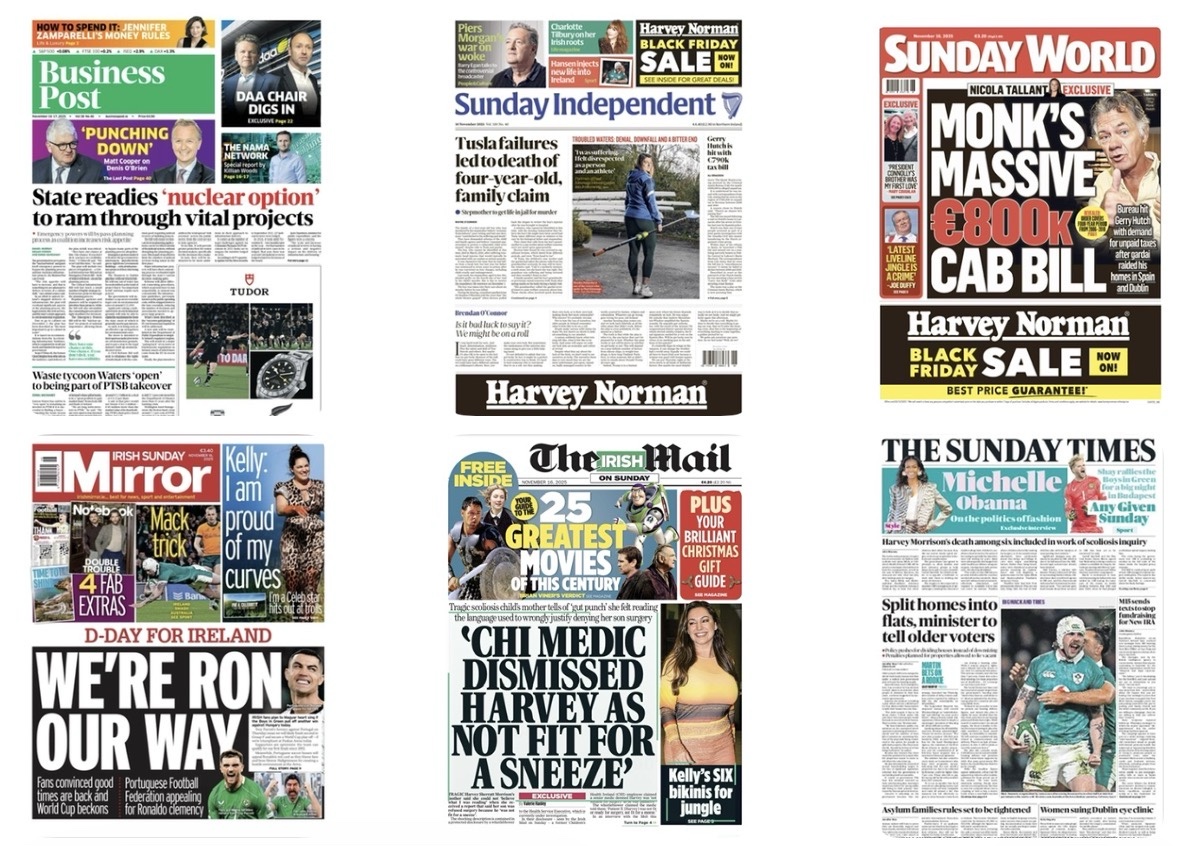 Irish Sunday newspaper #frontpages for November 16 [Updated]