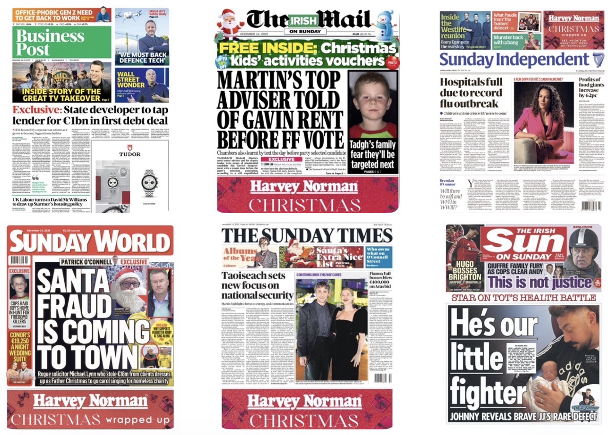 Irish Sunday newspaper #frontpages – for Dec 14 [Updated]
