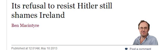 His words came to mind reading Ben McIntyre’s extraordinary opinion piece in last Friday’s Times entitled ”Its refusal to resist Hitler still shames Ireland”.