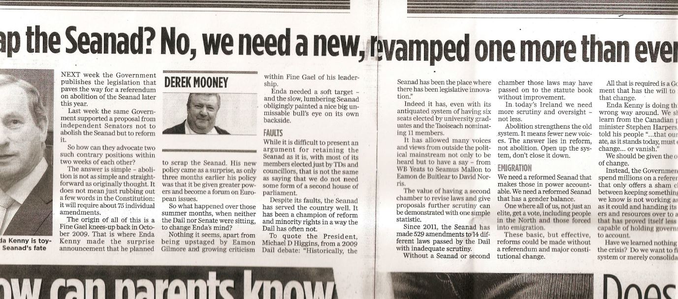 Rejecting abolition and giving ourselves a new reformed Seanad is about ensuring this doesn’t happen again.
