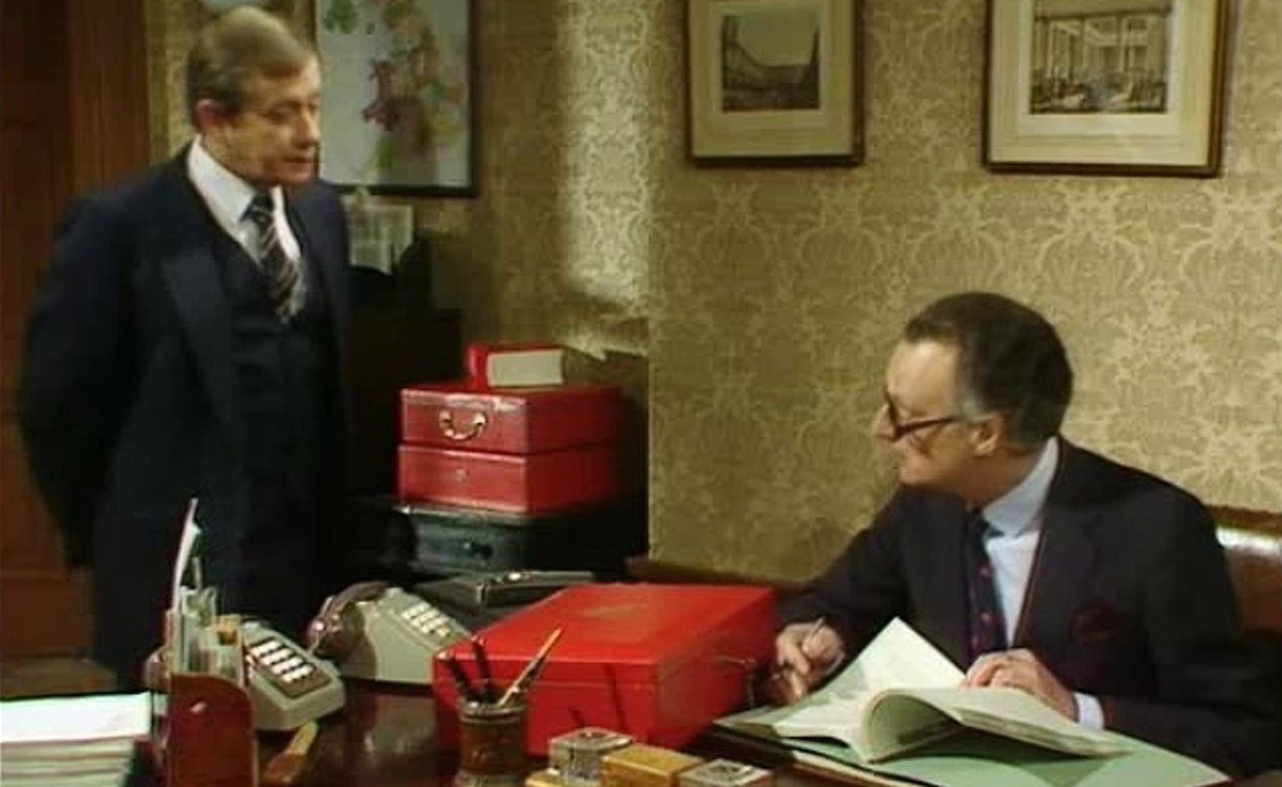 As for becoming Foreign Secretary, Hacker tells his private secretary that is an even worse job. While the Government wants to be nice to foreigners, he knows the electorate, especially his voters would want him to be nasty to them. Not to mention the fact that the British Foreign Office is now virtually irrelevant as Britain had no real power abroad and had just become a sort of American missile base since the 1950s. [Recall that this episode was first broadcast at Christmas 1984… a long time before Brexit]
